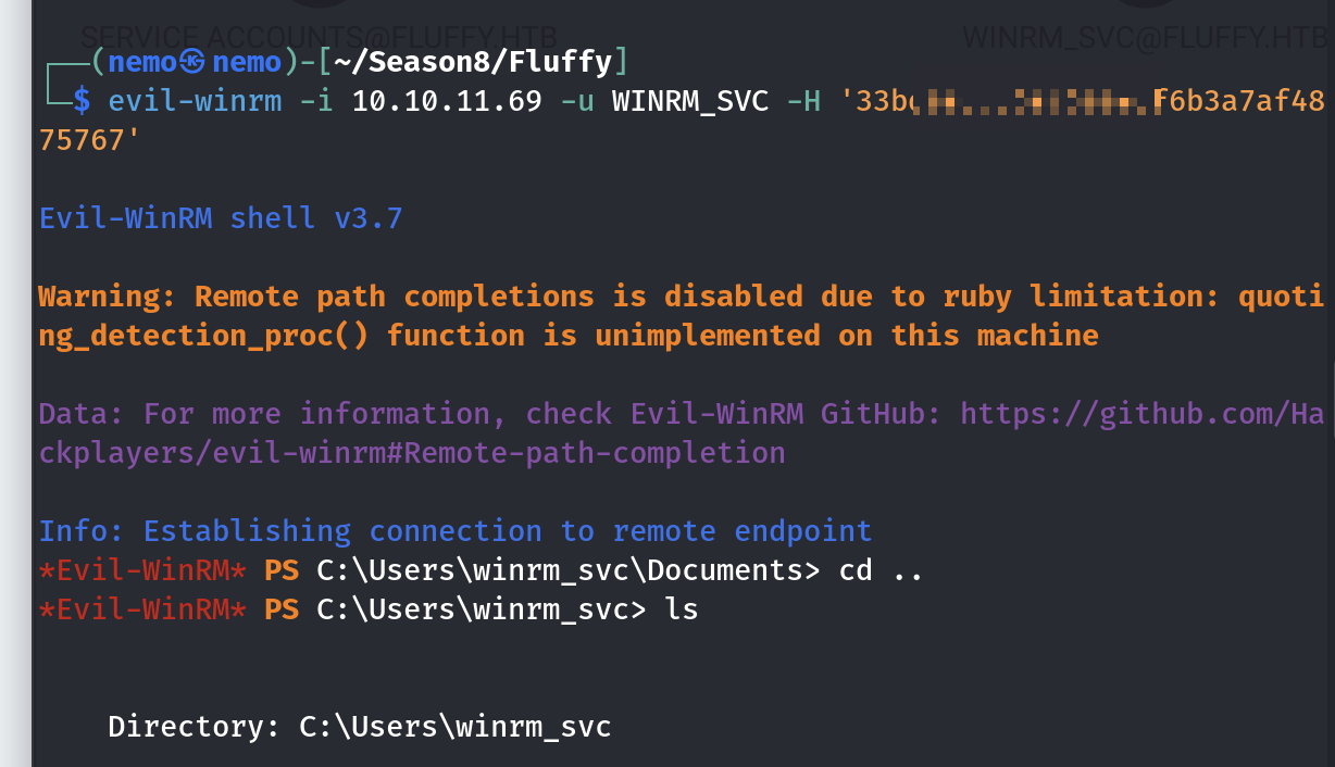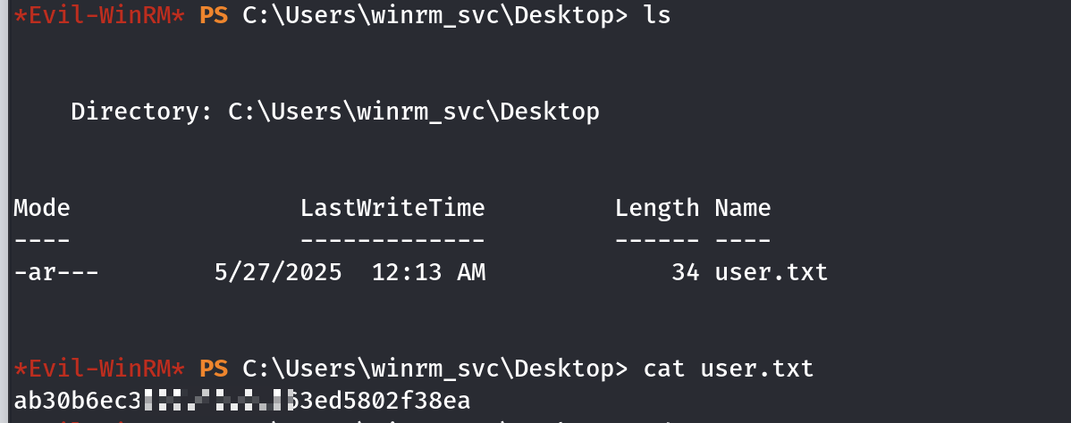 拿到winrm_svc的hash了,都叫这个名字了,肯定是可以直接登录